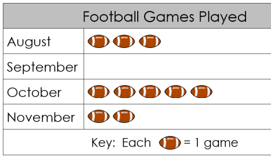 A total of 6 games were played in the month of September. How many footballs need to be on the picture graph for September?