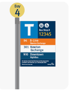 what is on the bus stop sign?