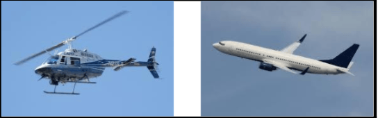 An airplane has wings but a helicopter does not; instead a helicopter has blades.