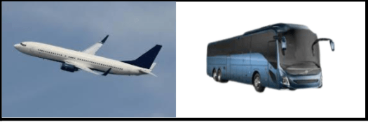 An airplane is used to fly in the air yet a bus is used to drive on the ground.