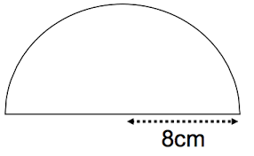 A = 1/2(3.14 x 82) C = 1/2 (2 x 3.14 x 8) + 16