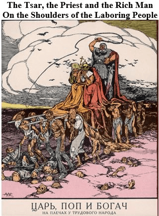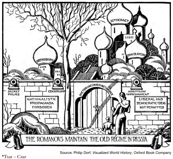 According to this cartoon, what is one way the Romanovs maintained their power? **Daily Double** name 3