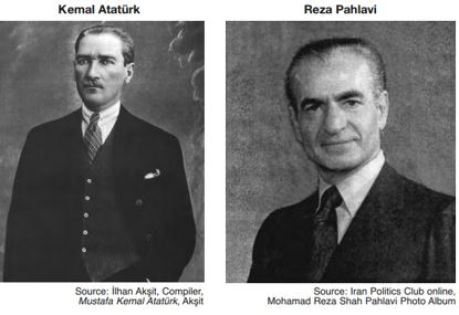 The way Ataturk of Turkey, and Reza Pahlavi of Iran are dressed is an example of______________.