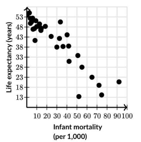 a. Countries with higher infant mortality rates tended to have longer life expectancies.
