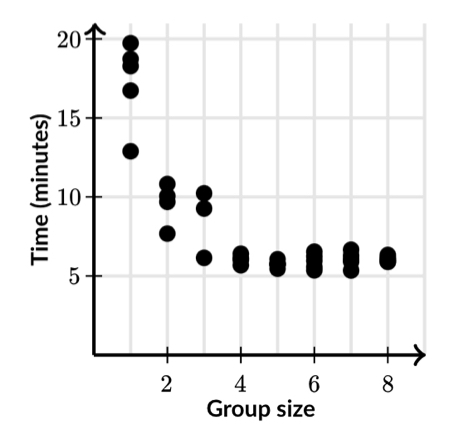 c.There is no clear relationship between group size and the amount of time it took to solve the puzzle.