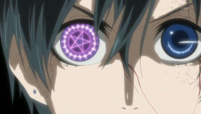 This character sells soul to a demon to get revenge for his parents’ deaths. The contract seal is located on his right eye.