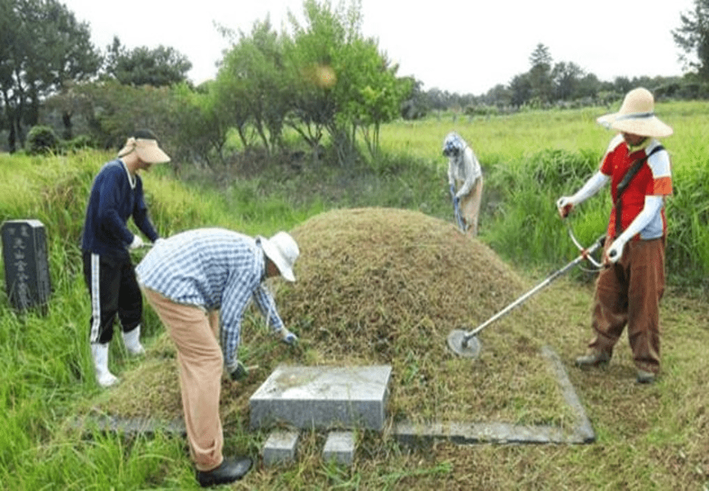 조상님의 무덤에 있는 잔디와 잡초를 제거 일