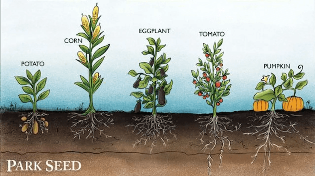 Which plant has roots that would obtain the LEAST amount of water from the because of its depth and surface area?