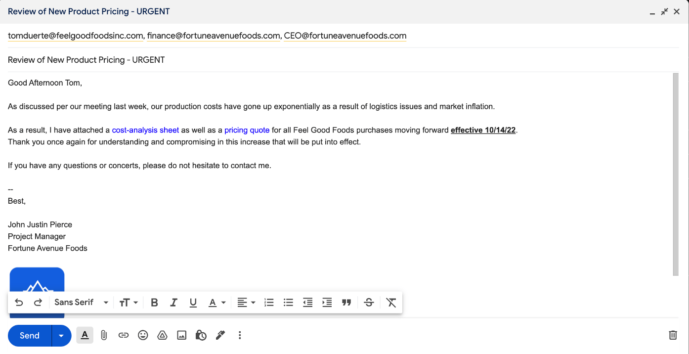 This function would be utilized when someone within your business should be kept in the loop of an entire exchange even though the message is not directly to them.
