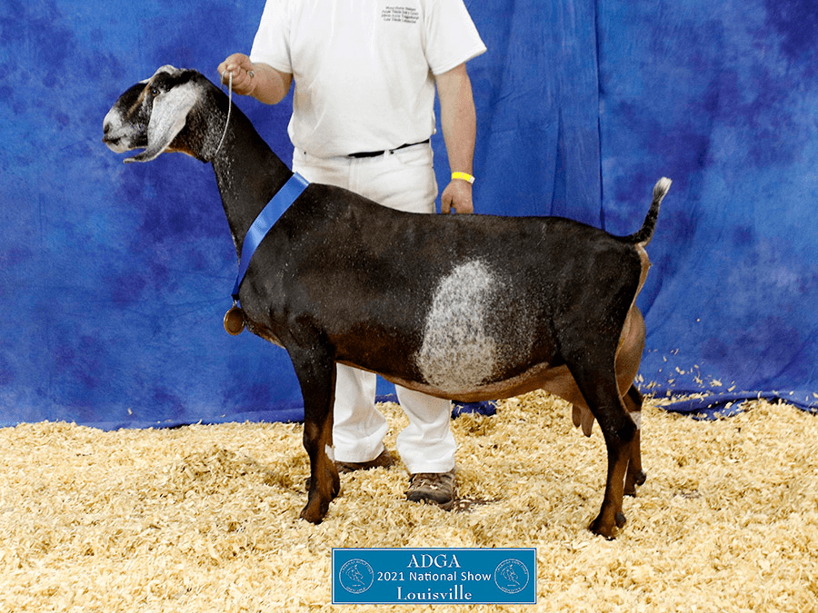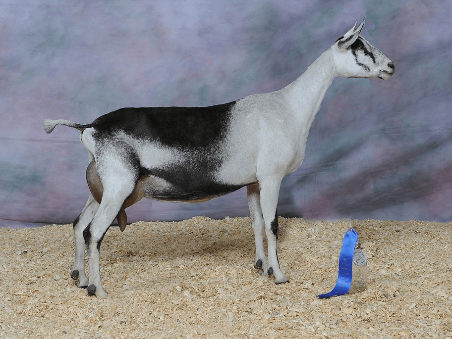 This breed of goat has long pendoulous ears, they can come in many colors and patterns.