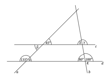 Find the measure of angle δ and state what the relationship is between δ and the angle ε.