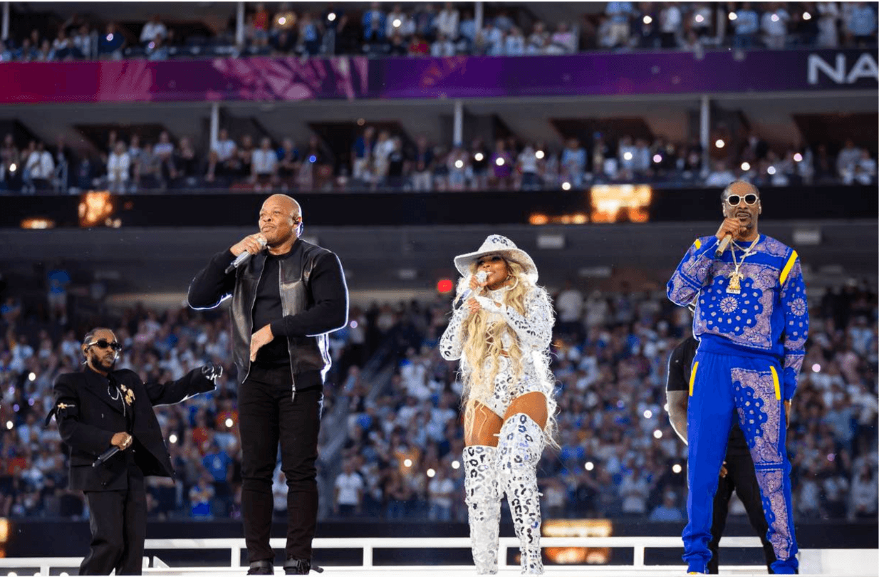 This rapper was the 5th performer accompanying these super bowl stars at half time.