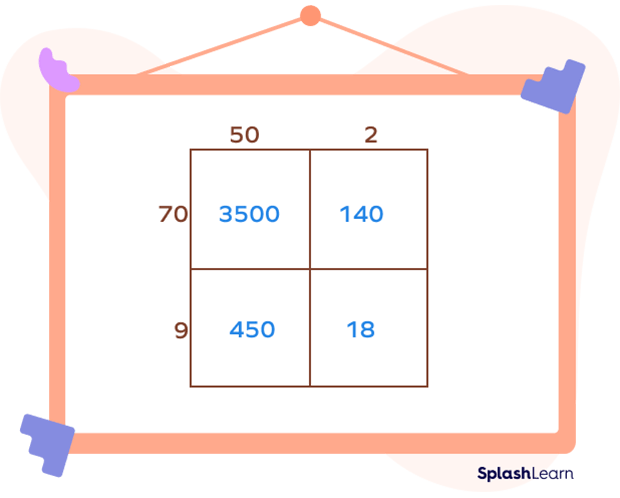 142 x 4 = (100 x 4) + (40 x 4) + (2 x 4)