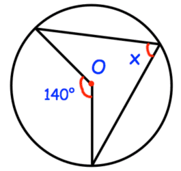 The angle at the circumference is half the angle at the centre.