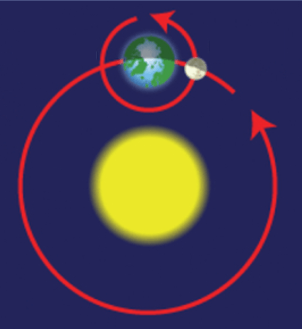 False! The moon revolves around the Earth (which orbits the Sun!)