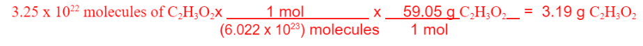 If you have 3.25 x 1022 molecules of C2H3O2, how many grams do you have?