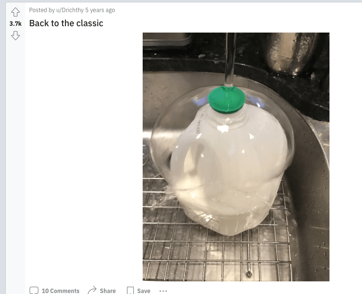 When the Water Flows over the Milk Jug at Just the Right Angle to Create a Bubble