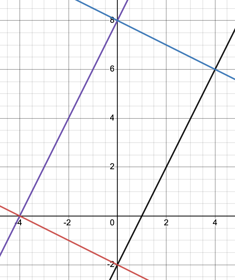 What are y=2x+8, y=2x-2, y=-1/2x -2, and y=-1/2x+8?
