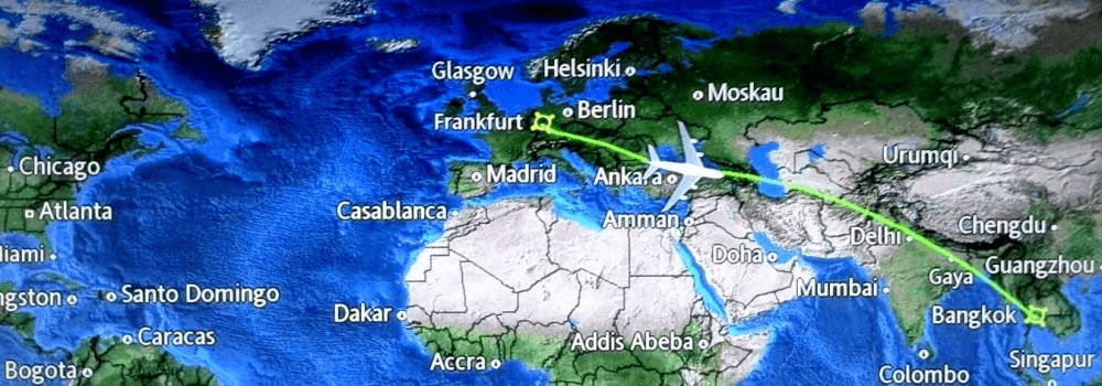 Wie viele km beträgt die Luftlinie von Bangkok nach Berlin?