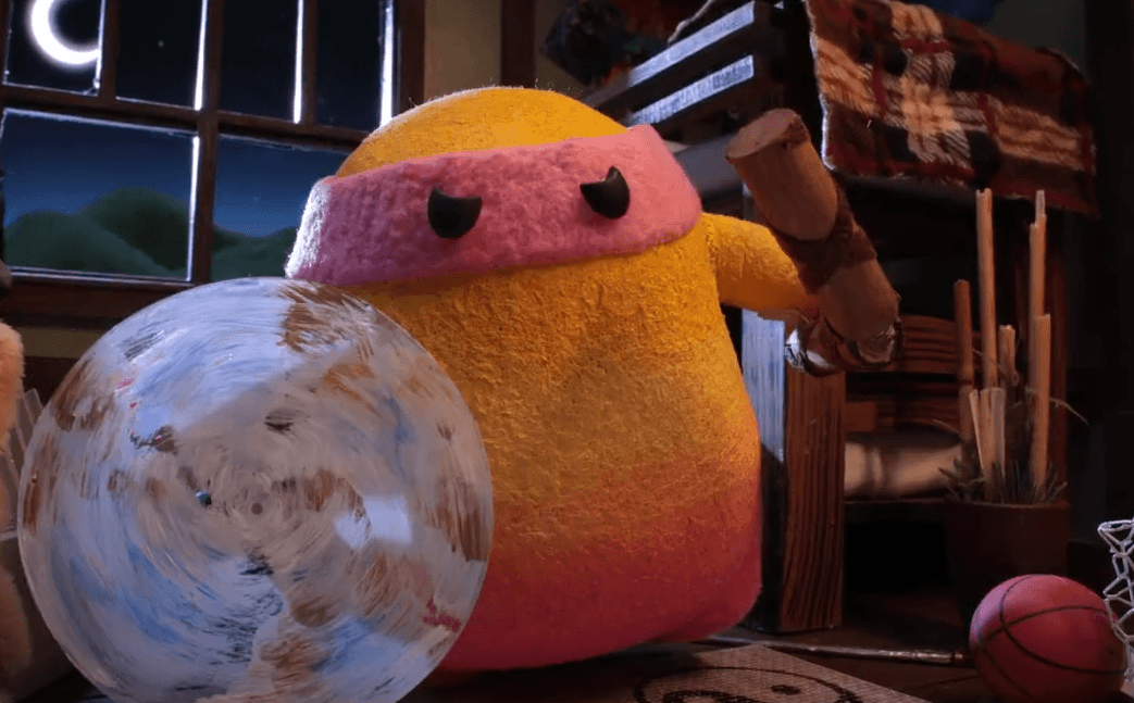 At the end of the short film we get a glimpse into Chonk's belly. What two foods are in there and which one is on the left?