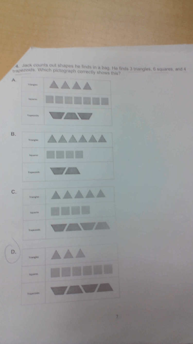 Which shows 3 Triangles, 6 Squares, and 4 Trapezoids