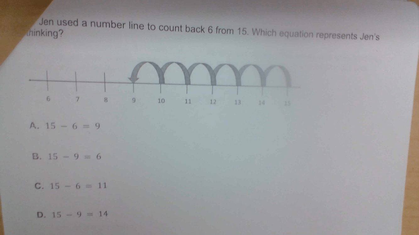 Jen used a number line to count back 6 from 15. Which equation represents Jen's thinking?