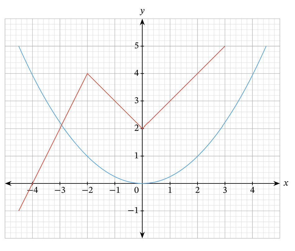The functions f(x) (red) and g(x) (blue) are graphed in the xy-plane below. What is the value of f(-2)-g(2) ?