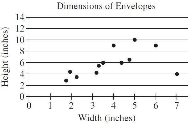 What is the width of the envelope represented by the data point that is farthest from the line of best fit?