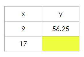 Write an equation for this table. y = _____ x