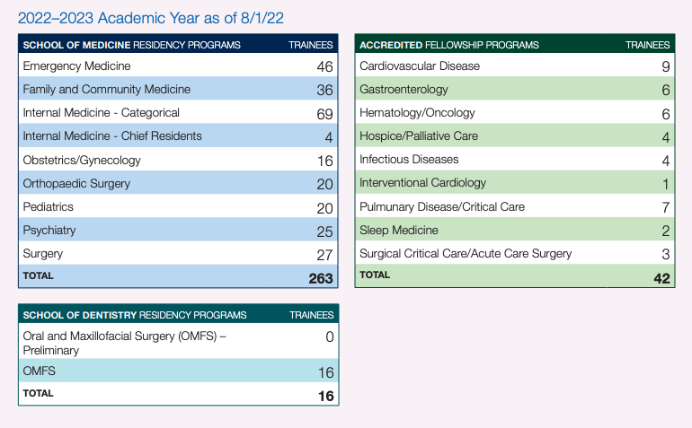 Number of residents/fellows across UCSF medical, dental, and pharmacy programs.