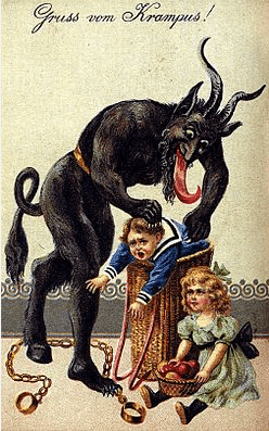 In German folklore, this horned, half-goat creature stalks the streets during Christmas season, punishing misbehaving children while St. Nicholas rewards the good ones.