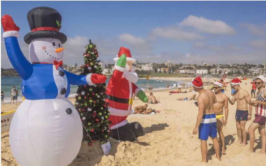 While Christmas is typically associated with cold weather and snow in the US.  Christmas in this country is associated with sunshine, barbeque, beach days, surf, and seafood.