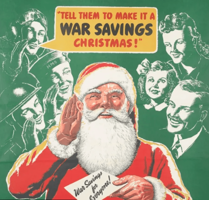 During WWII, Christmas celebrations were marked by rationing, and shortages leading to resourceful, often homemade gifts.  WWII ended in this year
