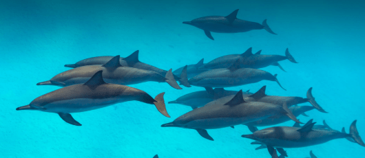 Santa's reindeer travel as a herd.  A group of dolphins is called this