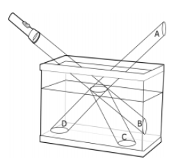 Which beam of light is the result of refraction?