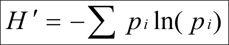 In this equation, pi is the relative abundance of a species in system. H` is known as this.