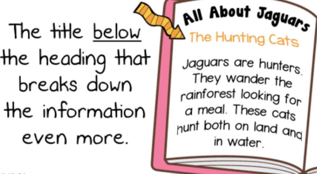 These are titles of sections in a text that give the reader an idea about what this section will be about.