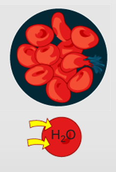 The extracellular fluid (outside the cell) has a lower concentration of solutes than the fluid inside the cell, and water enters the cell.