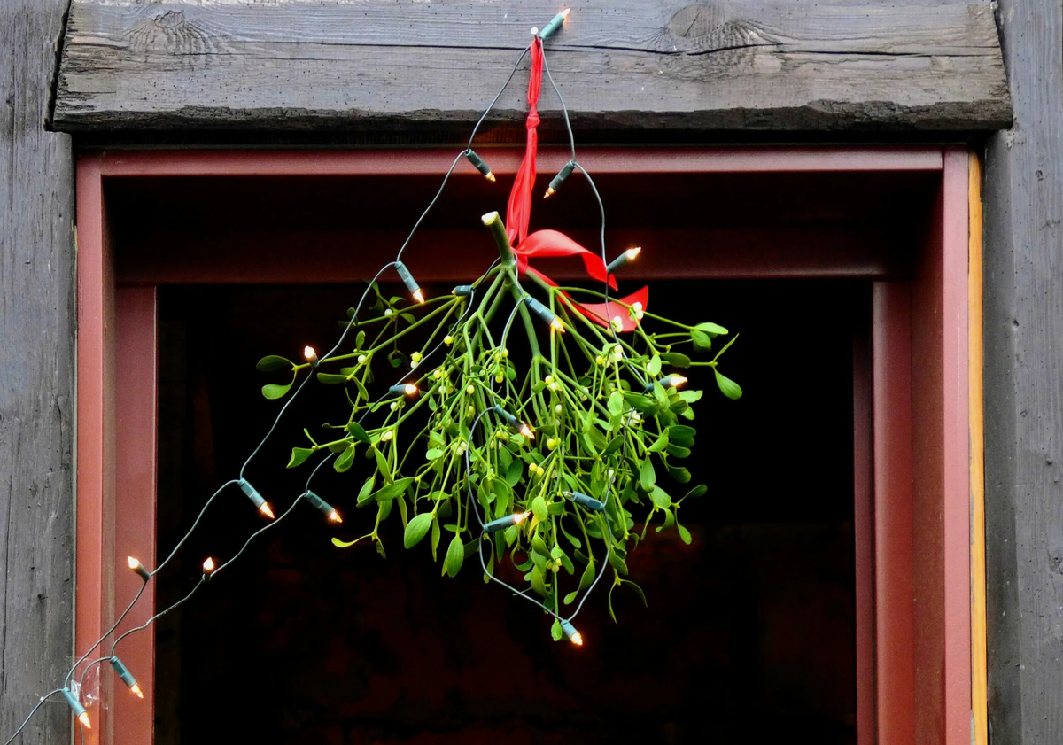 Long ago in the United Kingdom, this object was hung in doorways to ward off evil spirits. Today, people usually kiss each other under it. What is this plant?