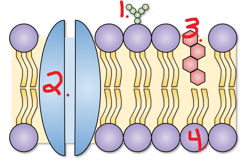 4. Phospholipid (purple hydrophilic / yellow hydrophobic)