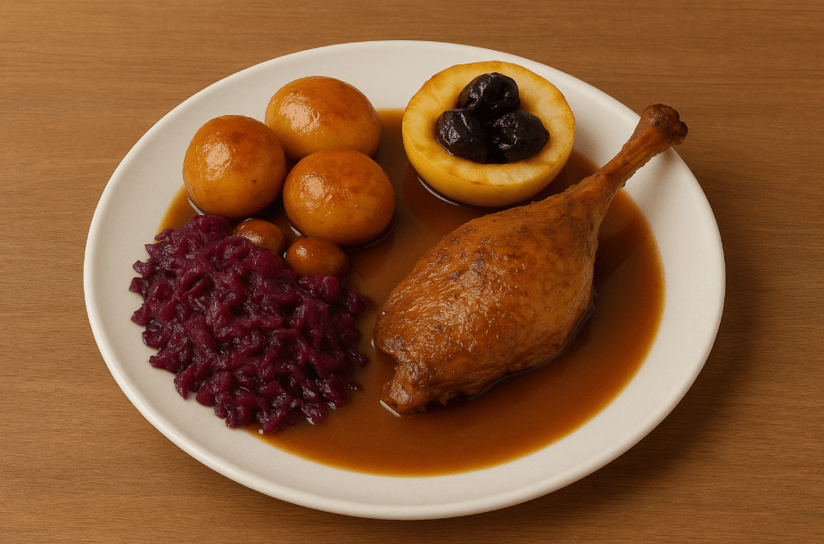 Antal procent, der spiser and og antal procent, der spiser gås. (Svaret adderer ikke til 100%, +/- 10 procent accepteres)