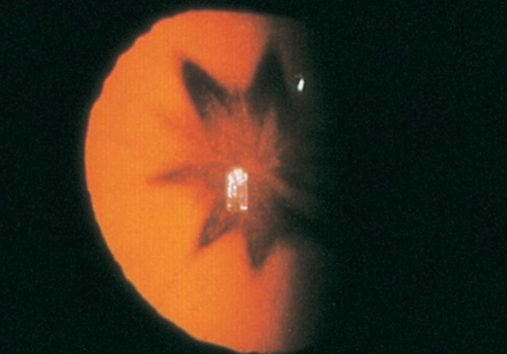 BONUS: Rosette configuration. Traumatic cataract.