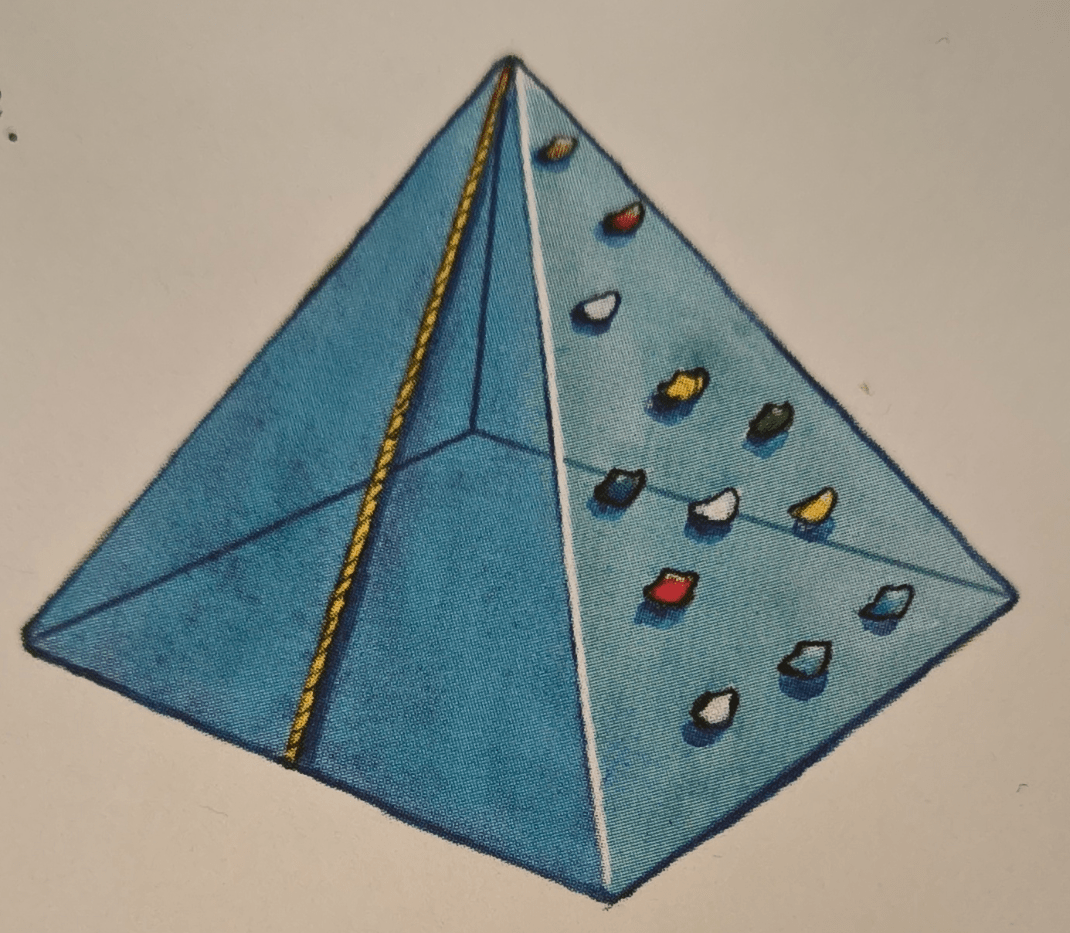 There is a climbing pyramid in the schoolyard.