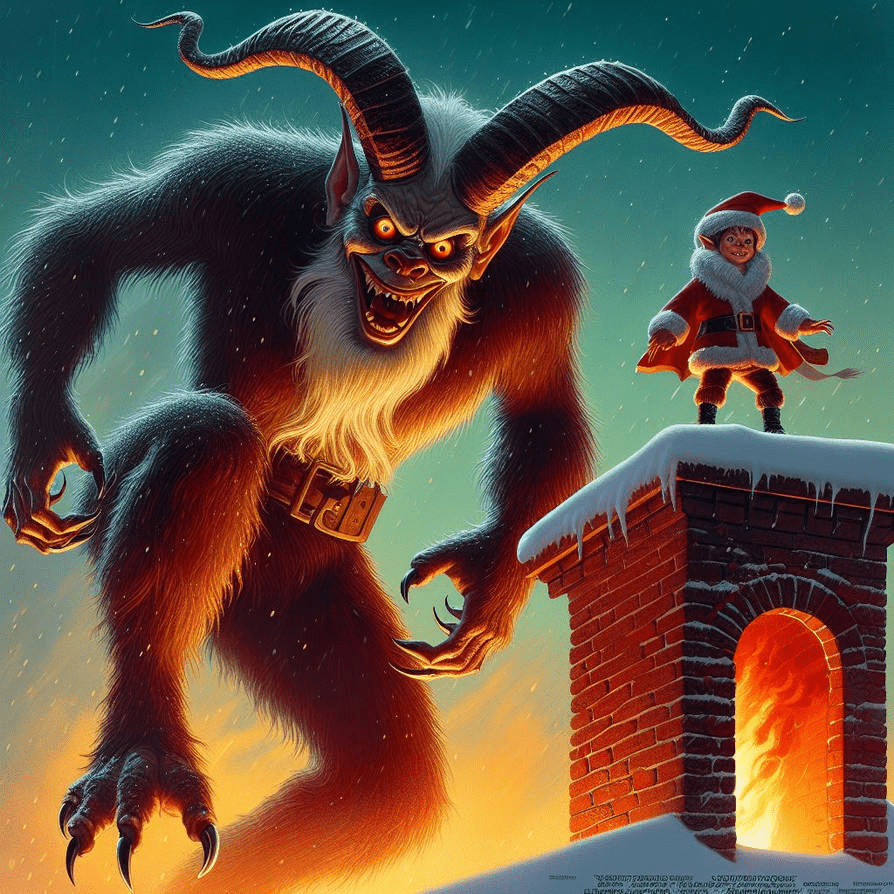 In Germany, this frightening Anti-Santa Claus with goat's hooves and horns punishes children who misbehave instead of bringing them gifts