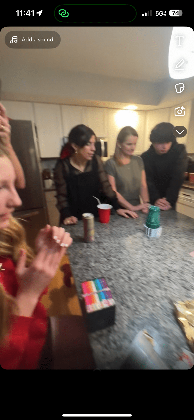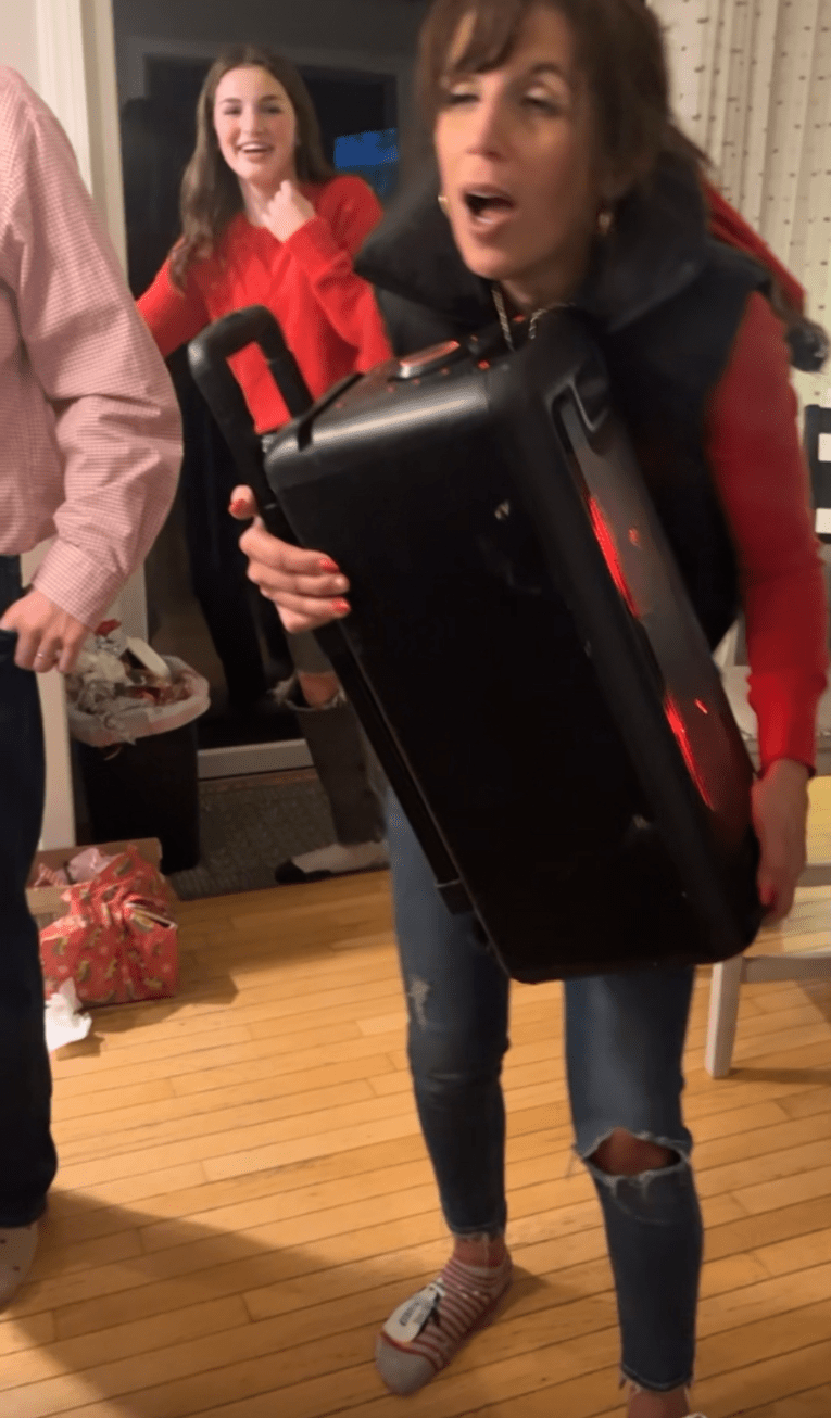 What song was playing when mom was holding the speaker screaming to shut it off?