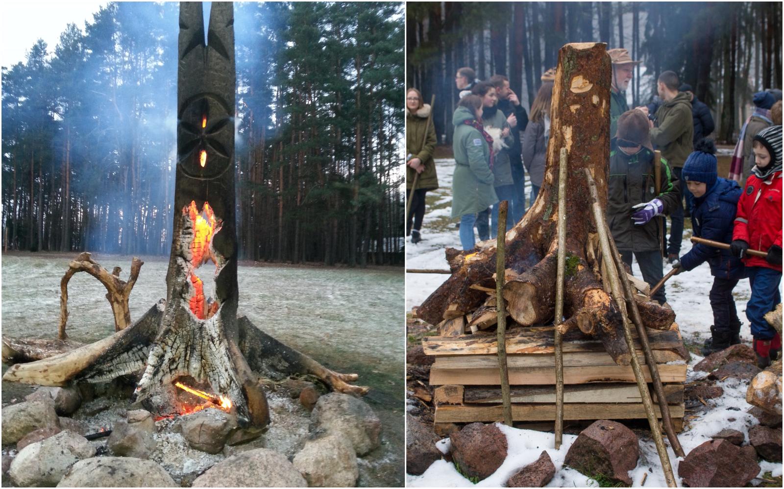 Una vieja costumbre: se arrastra un tronco por el pueblo o el patio, "llevándose" simbólicamente el año viejo y los males, y luego se quema.