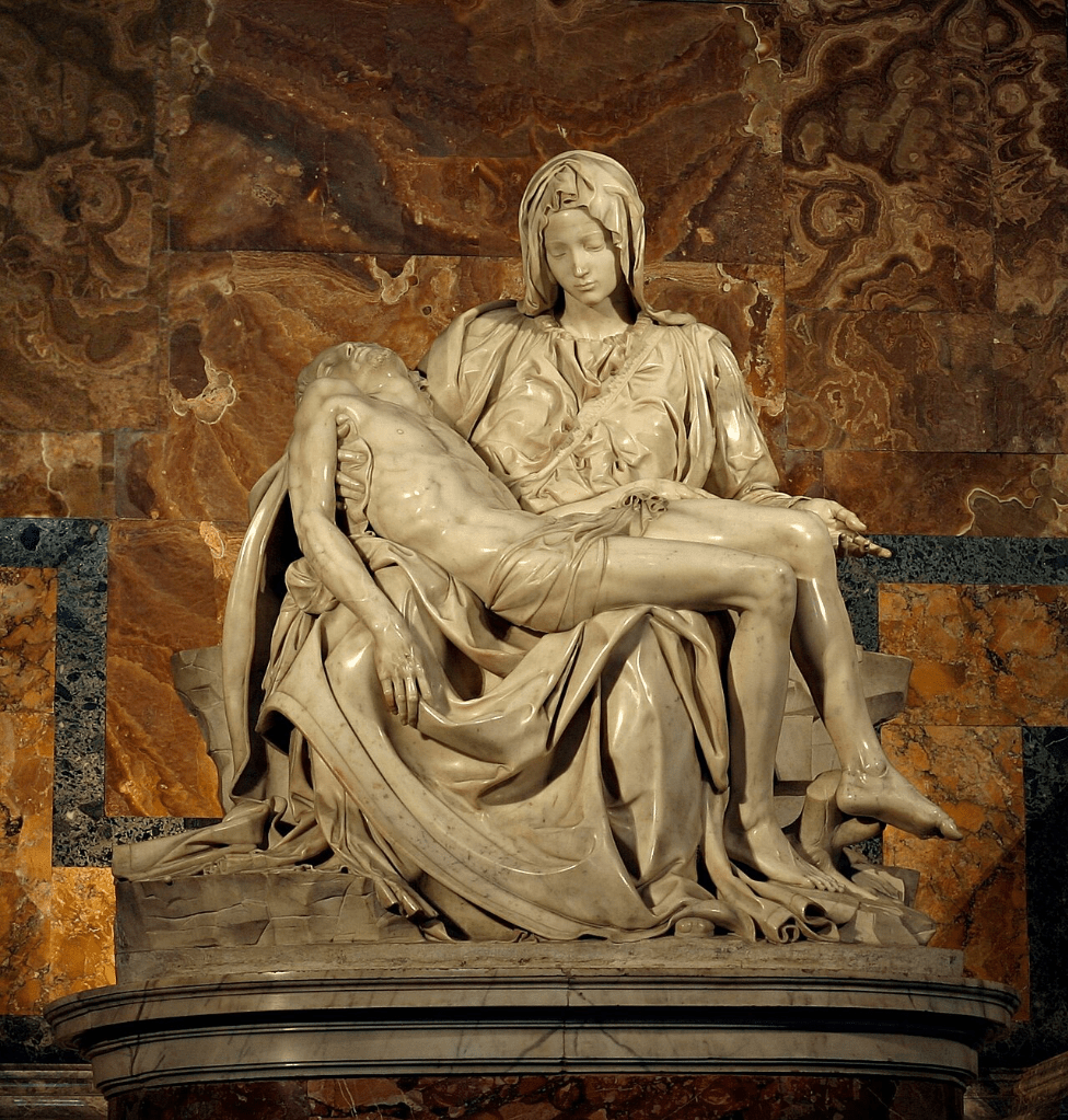 This Piece, whose title means ”pity” depicts the Blessed Virgin Mary cradling the mortal body of Jesus Christ after his Descent from the Cross.