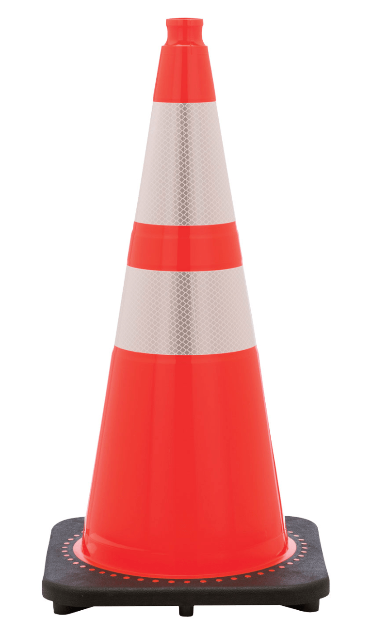 What is 5 Cones must be fluorescent orange, a minimum of 28 inches high, and include at least one retroreflective white band.