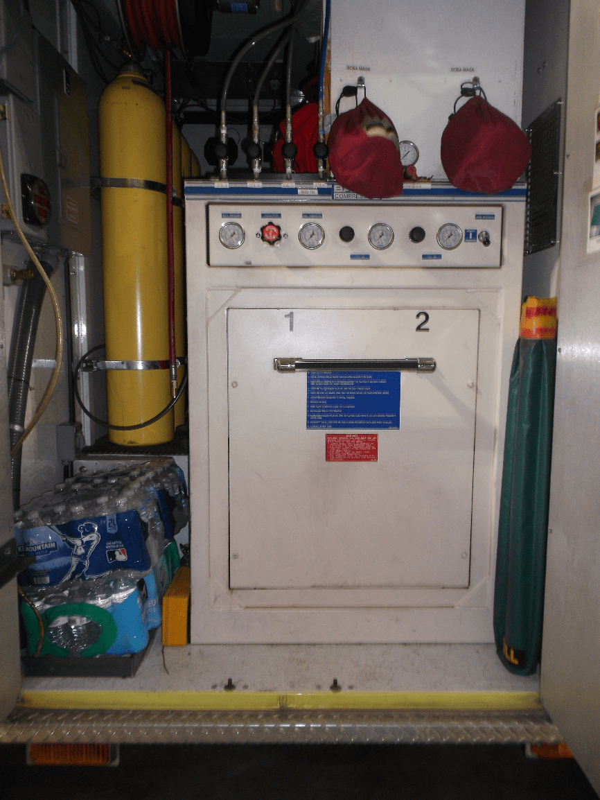 on what apparatus and what compartment is the S.C.B.A. cylinder mat located?