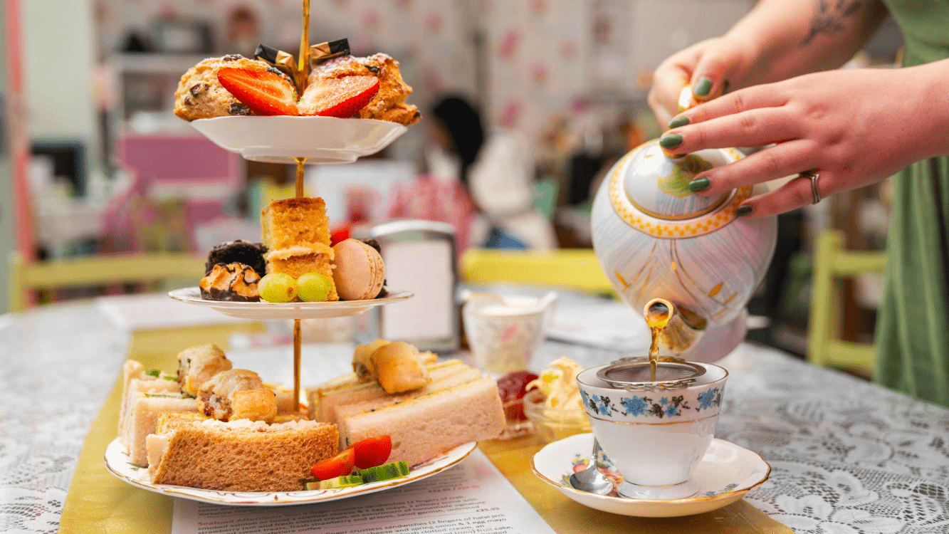 This English tea tradition involves small sandwiches, scones, and pastries.